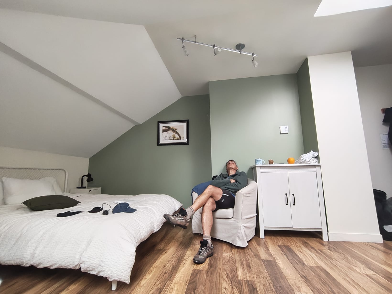 Die Trasse ist vom Regen völlig aufgeweicht und ein Vorankommen unter diesen Umständen zumal es weiter in Strömen regnet nur noch sehr eingeschränkt möglich.und so erreiche ich,nass bis auf die Knochen und die Finger klamm vor Kälte das Hostel in Riviere Du Loup.Hier besorge ich mich zunächst einmal mit Steak und Nudeln und lecke meine Wunden…